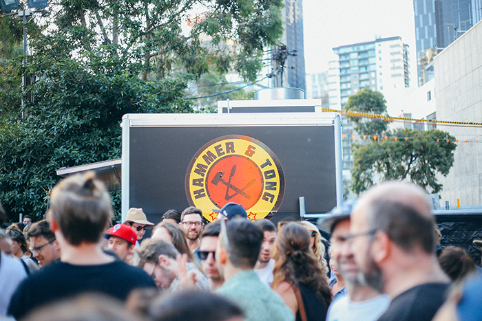 We went straight to the foodie business end for our first indulgence – Hammer&Tong’s Soft Shell Crab burger. Most Melbourne foodies know that this is the thing to get at Hammer & Tong, but we’d never had it before and were super excited. It didn’t disappoint, with its crispy deep fried soft shell crab, fresh coriander, slightly pickled cabbage slaw, sriracha mayo between toasted sesame brioche. It was delicious and uncomplicated, and enough to completely distract from the energetic Chela and her back-up dancers doing their brilliant 80s-esque thing onstage.